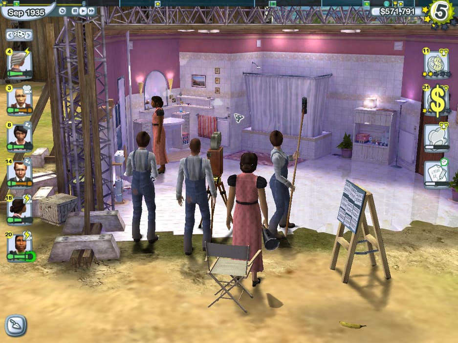 Вы строите студию с нуля: возводите павильоны, нанимаете актёров, снимаете фильмы — от немого кино до блокбастеров с эффектами. Управляете бюджетом, карьерами звёзд и их гонорарами. А потом — самое главное — садитесь за камеру. В режиме съёмки вы сами создаёте сцены: ставите актёров, пишете диалоги, выбираете ракурсы, добавляете спецэффекты. Получается не всегда шедевр, но почти всегда — весело.