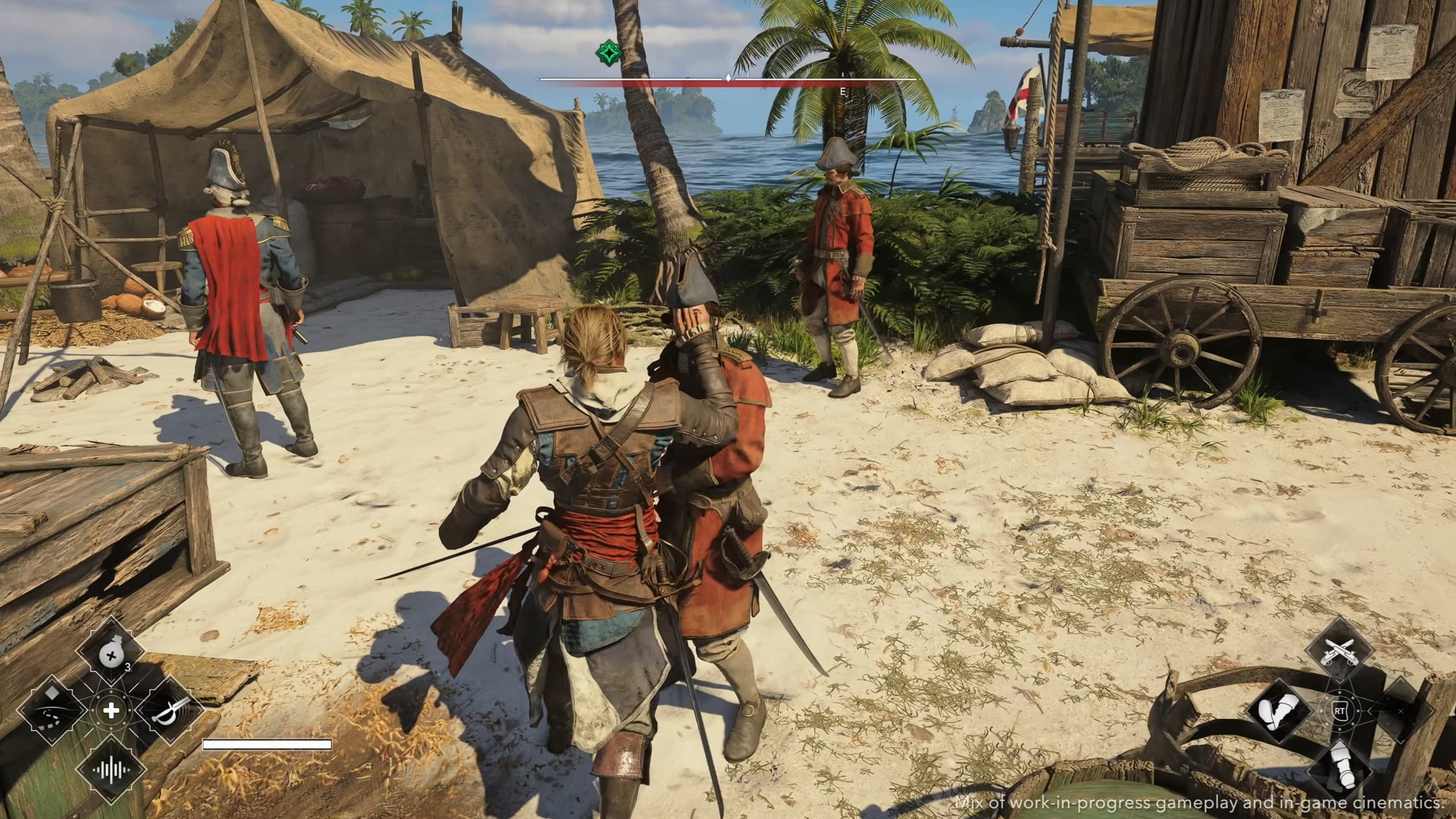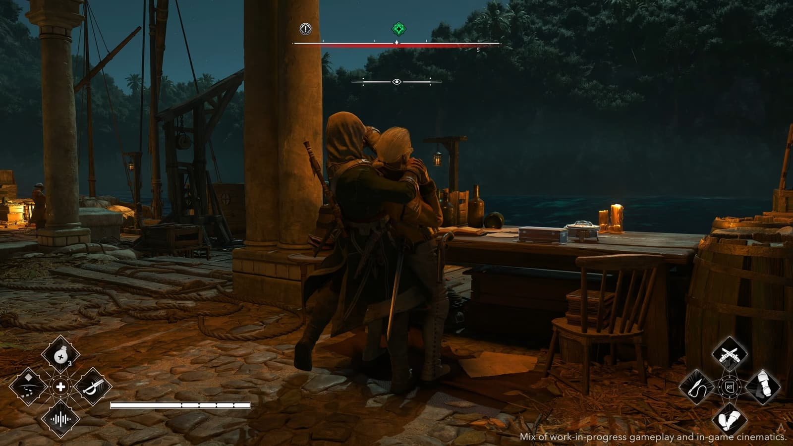 Но главное изменение стелса — полный отказ от мгновенного провала в миссиях слежки и во время подслушивания. Если Эдварда заметили, сцена не обрывается: цель динамически реагирует — может начать драку, убежать, поднять тревогу — и игрок должен адаптироваться к новой ситуации прямо в процессе. Ubisoft официально признала, что мгновенные десинхронизации были «большой болевой точкой» оригинала.