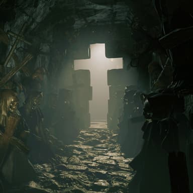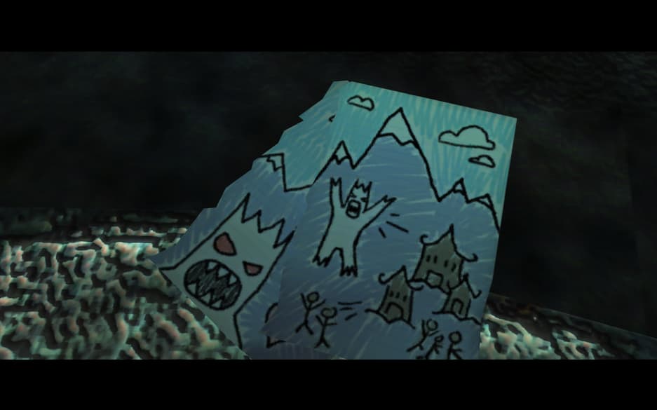Дальше мы видим, как они прячутся в заброшенном храме, где Лара находит древний постамент с воткнутым в него мечом. Случайно активируя его, она открывает Врата. Тут в помещение вбегает мать и, испугавшись за дочку, отгораживает ее. С той стороны Врат старшая Крофт слышит голоса, явно настроенные враждебно. Пытаясь закрыть портал, она вынимает меч из постамента и исчезает — мама Лары попала в другой мир. Лара пытается докричаться до исчезнувшей матери. Дальше нам показывают, как она делает зарисовки постамента в том самом альбоме и уходит из помещения, оставив на полу вырванные страницы, на которых она рисовала йети.