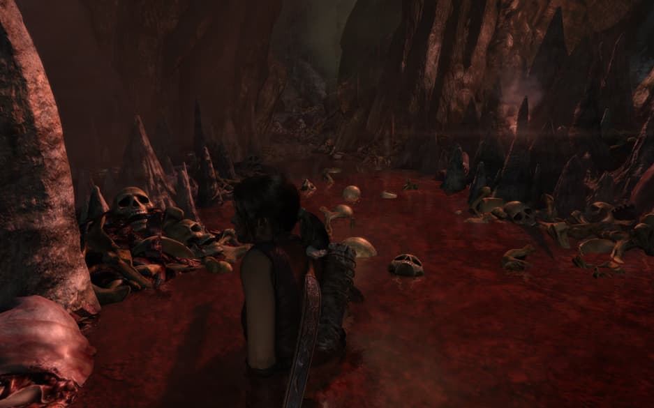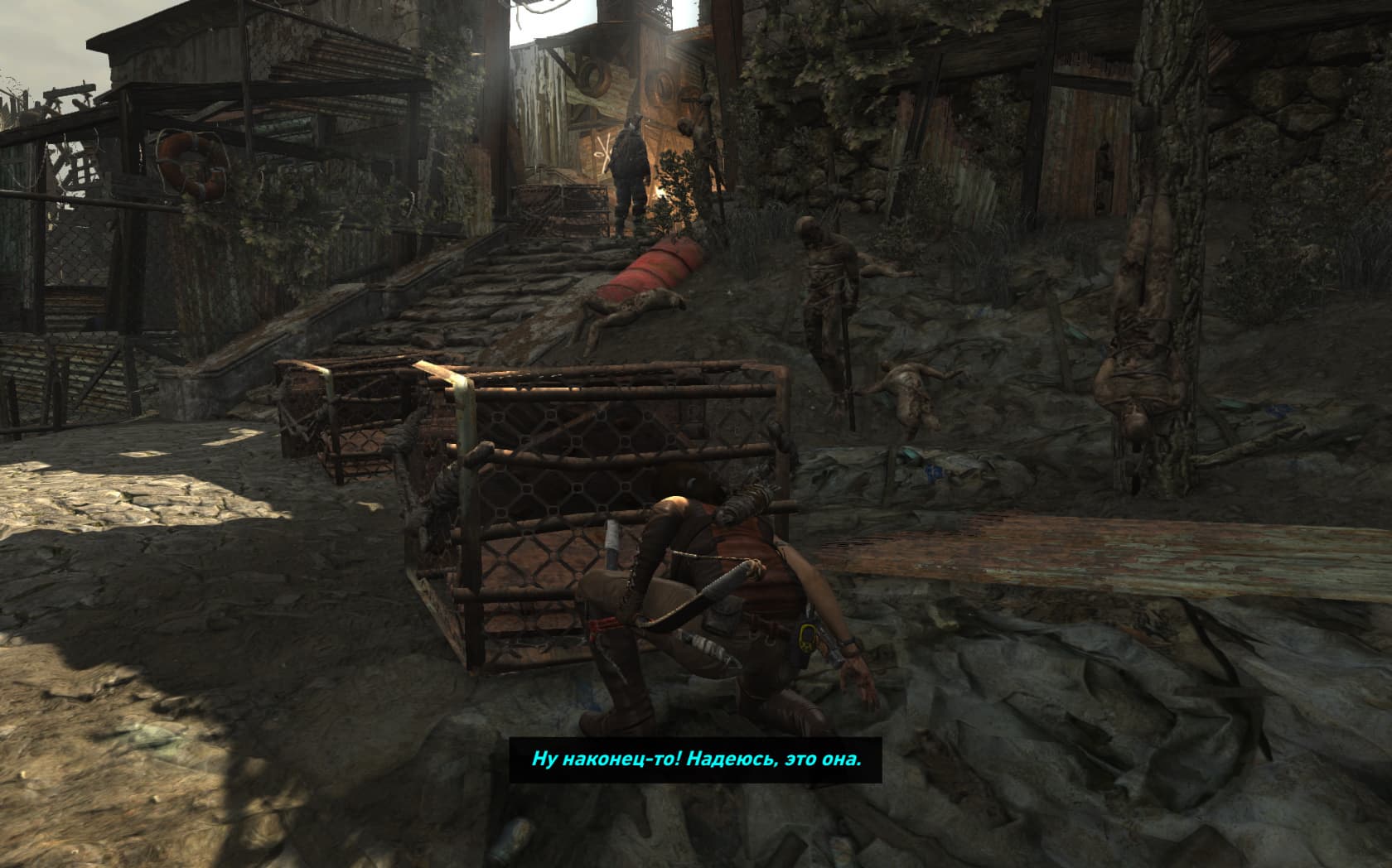 Да, это отдельная красная линия перезапуска. Расчлененка, кровища, постоянные ранения и жуткие анимации смерти самой Лары Крофт — даже режиссер фильма «Хостел» так не радовался виду мяса, как создатели перезапуска. Ниже на скриншотах будет видно, как в Crystal Dynamics представляют себе жизнь в первобытной общине. Авторы игры хотели создать этим какое-то гнетущее настроение и даже напугать впечатлительных игроков. Возможно, авторы игры потеряли бы сознание у мясного прилавка на рынке, раз считают, что трупы в таком количестве действительно могут кого-либо впечатлить.