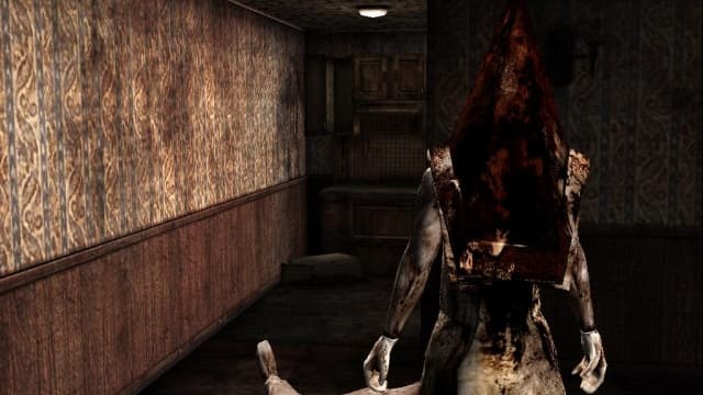 Ещё Silent Hill 2 запомнился благодаря монстру Pyramid Head. Тварь с человеческим телом в огромной металлической маске в виде пирамиды (отсюда и прозвище) и с тесаком в руке преследовала героя почти до финала. Этот злодей стал достойным аналогом Немезиса из Resident Evil 3.