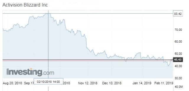 Компания Activision Blizzard сразу же получила пинок от фондового рынка, как только начала принимать непопулярные решения. Появление грабительских микротранзакций в Call of Duty: Black Ops 4, анонс Diablo: Immortal на Blizzcon и расставание с Bungie и Destiny вылились в падение стоимости акций почти на 50%.