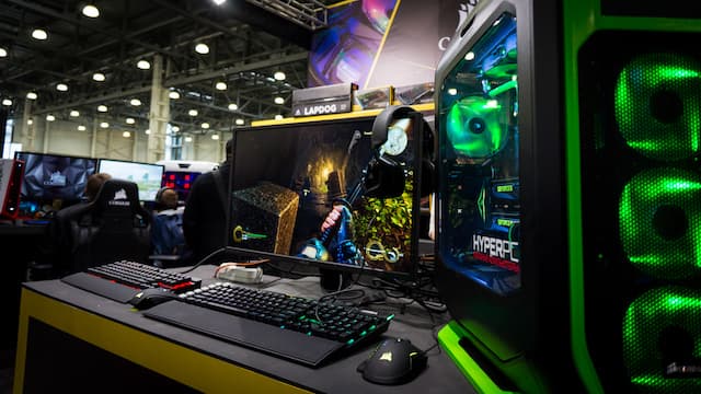 Что касается вышеобозначенного эпицентра «массовой истерии», то речь идёт о павильоне, где производители игрового железа в буквальном смысле стараются перекричать друг друга, привлекая толпы игроков к своим впечатляющим стендам.