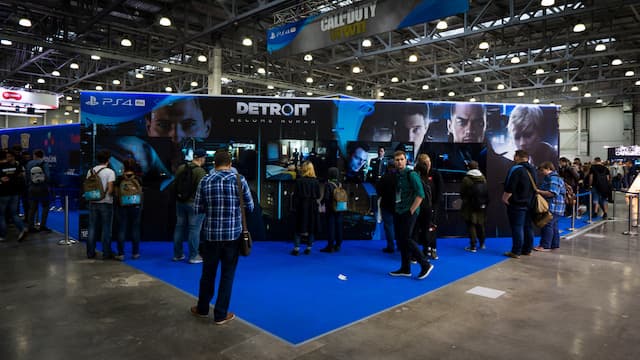 Стенд PlayStation прост и лаконичен. Здесь нам, как и в прошлом году, показывают PlayStation VR и Gran Turismo Stort. Есть несколько игр от сторонних издателей, а что касается будущих новинок — можно лицезреть Detroid: Become Human и Call of Duty: WWII.