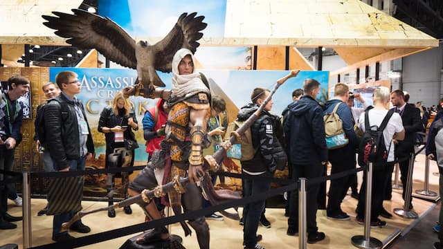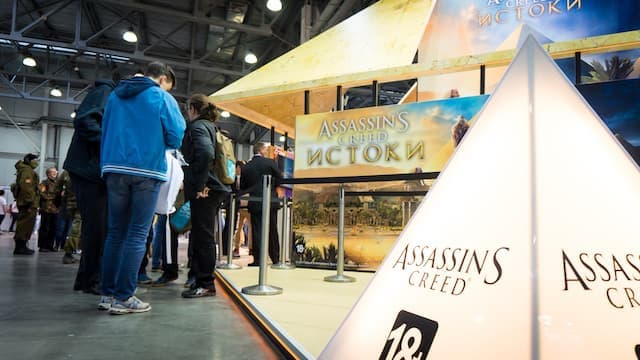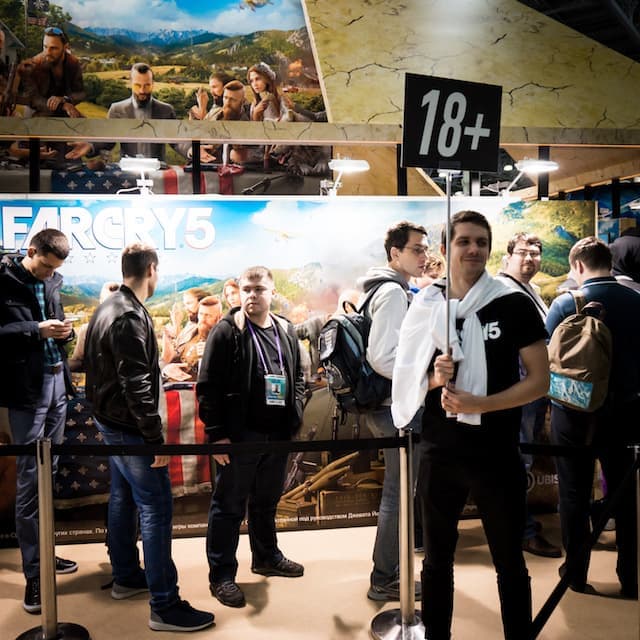 Стенд Ubisoft самый яркий, исполненный в виде пирамиды. Издалека его вообще можно перепутать с культурной инсталляцией, если бы не входы-выходы для людей, стремящихся познакомиться с The Crew 2, Far Cry 5 и Assassin's Creed: Origin. На демонстрацию Far Cry 5 пускали только людей, достигших 18 лет.