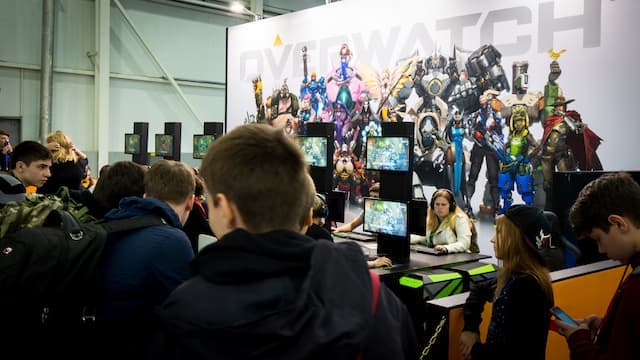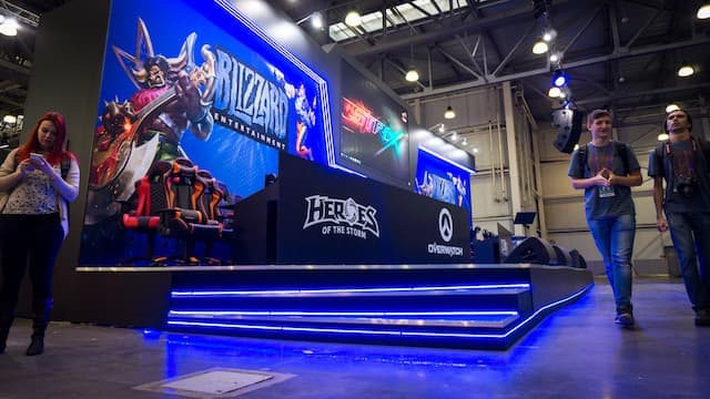 Игровой павильон, где собрались игровые компании (хотя с краю всё-таки стоят небольшие стенды производителей «железа»), точно порадует фанатов Blizzard. Действительно, где ещё можно поиграть в Heroes of the Storm и Overwatch, как не на «Игромире»…