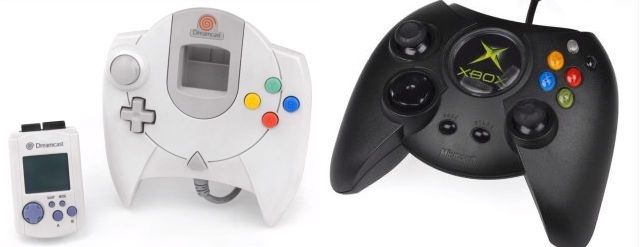 - Отдельного внимания стоят контроллеры Dreamcast. Не зря Microsoft во время разработки своих контроллеров для Xbox взяла за основу именно их. Несмотря на угрожающий и громоздкий внешний вид, они были очень удобными. Шнур из-за разъёмов для подключения карты памяти и модуля вибрации выходил снизу, но фиксировался и не мешал. В качестве карт памяти (Visual Memory Unit или VMU) Sega придумала отдельную небольшую консоль с примитивными играми на монохромном дисплее, а за достижения в них давались бонусы для игр на Dreamcast. VMU также можно было использовать как часы и календарь.