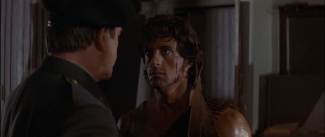 Узнав, что Джон освободил пленника, командование отзывает вертолет. Рэмбо и его спутника окружают и берут в плен. Потом Джона истязает офицер советской армии. Но Рэмбо избавляется от пут.