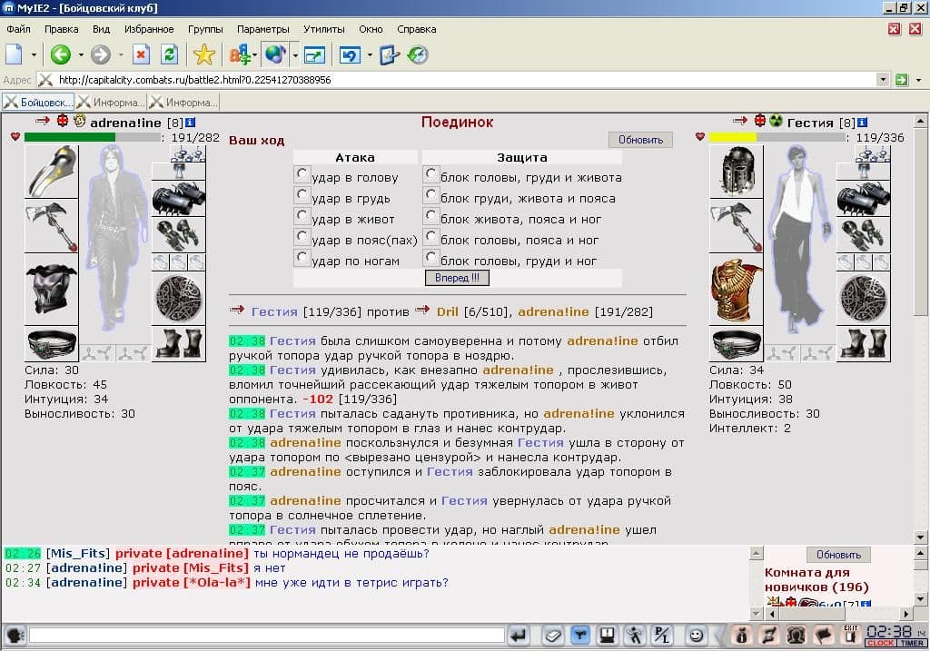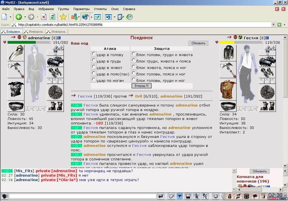 «Бойцовский клуб» (далее – БК) – это браузерная многопользовательская игра-легенда. И это не преувеличение. На портале combats.ru в начале 2000-х днями и ночами проводили время тысячи жителей СНГ, несмотря на существование достойных и продвинутых видеоигр. БК был абсолютным хитом компьютерных клубов, модным среди офисных работников, которым хотелось чего-то большего, чем пасьянс «Косынка», и у владельцев домашних PC, желающих расслабиться после трудового дня. Вокруг игры возникали мощные объединения, формировались кланы, фанаты регулярно проводили сходки, дружили, знакомились, заключали браки.