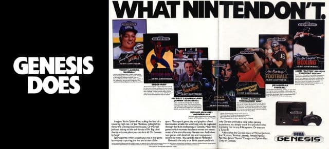 1) Маркетинг направлен на противостояние Nintendo (также была рекламная компания, высмеивающая TurboGrafx-16). Её логунгом был «Genesis does what Nintendon't» (Genesis делает то, чего не может Nintendo).