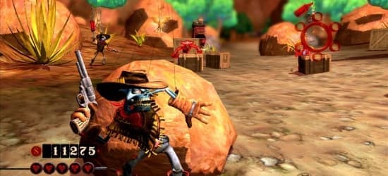 Игра со странной судьбой. Изначально она планировалась в качестве XBLA-шутера для контроллера Kinect, потом издатель посмотрел на нее трезвым взглядом, увидел масштаб проделанной работы, впечатлился и решил выпустить ее на дисках. Интересно, насколько это смелое решение себя оправдает? В любом случае приятно, что талантливая студия Twisted Pixel (создатели The Maw, 'Splosion Man и Ms 'Splosion Man) наконец-то пробилась в «высшую лигу». The Gunstringer представляет собой занятный скролл-шутер, в котором мы левой рукой управляем персонажем (прыжок, вправо-влево), а правой - помечаем цели и стреляем из пистолетов. Вроде бы немного, но с хорошим воображением можно построить увлекательную игру даже из такого незатейливого набора действий.