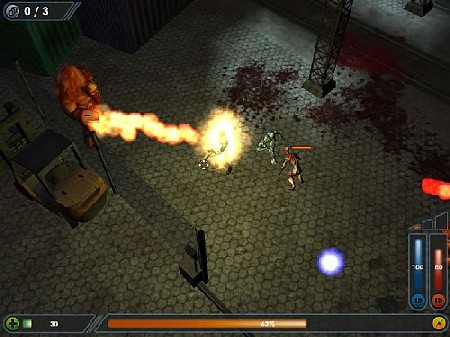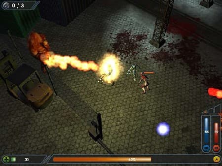В помещениях лаборатории еще недавно все было разложено по полочкам, а сейчас там валяются груды мусора, растерзанные тела охранников и ученых. Малая часть предметов разрушается и деформируется, остальные прекрасно выдерживают любой огненный шквал. Не присматривайтесь. Главные декорации не эти комнаты и склады, а те монстры, что волнами двигаются навстречу игроку. Разноцветные твари прекрасно отрисованы и живенько перебирают лапками. Окрас противника – своеобразный сигнал игроку об опасности. Зеленые – практически новобранцы, желтые – требуют более осторожного обращения. Красные и редкие синие – сами не прочь поохотится за игроком.