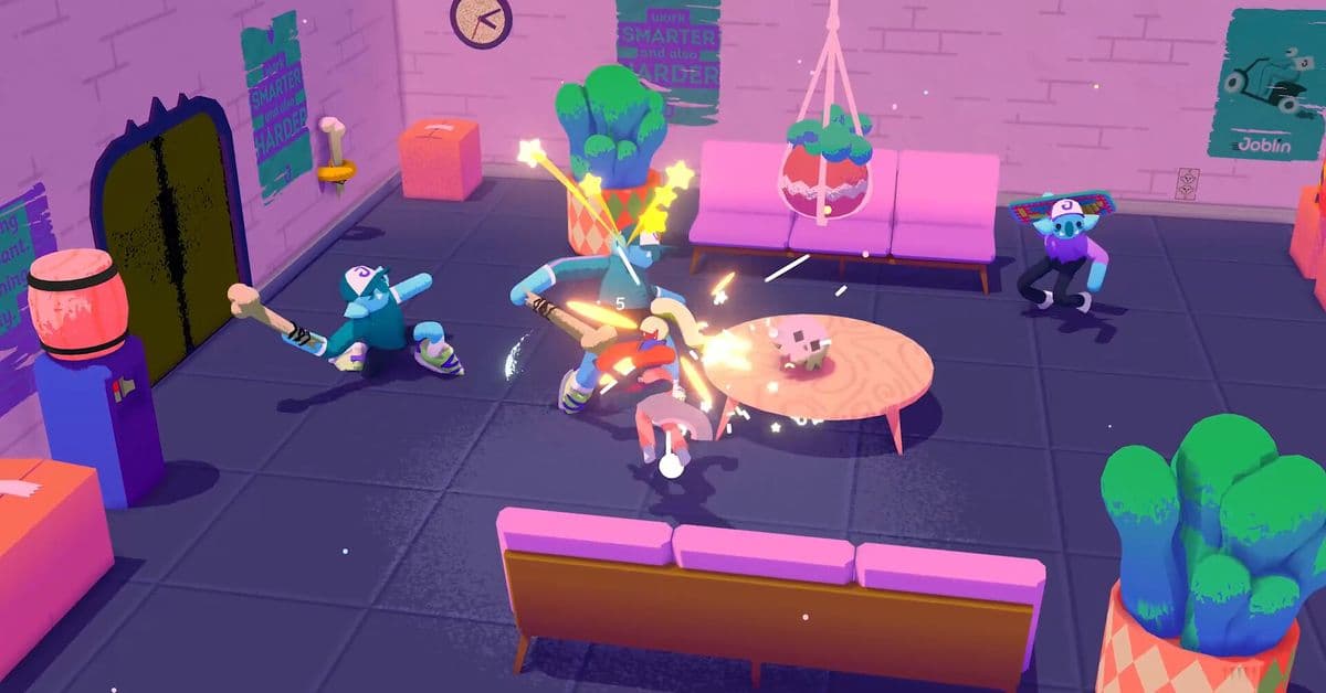 Аркадный симулятор реслинга с забавными персонажами и яркими эффектами.
