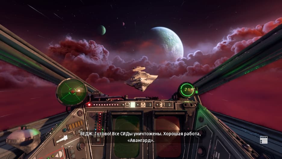 Сценаристы проделали хорошую работу только в одном – вплели Squadrons в общий канон, сделав отсылки на игры, фильмы и даже мультсериалы по вселенной. Можно встретить Геру Синдуллу, услышать про Иден Версио и даже пообщаться с Веджем Антиллесом!