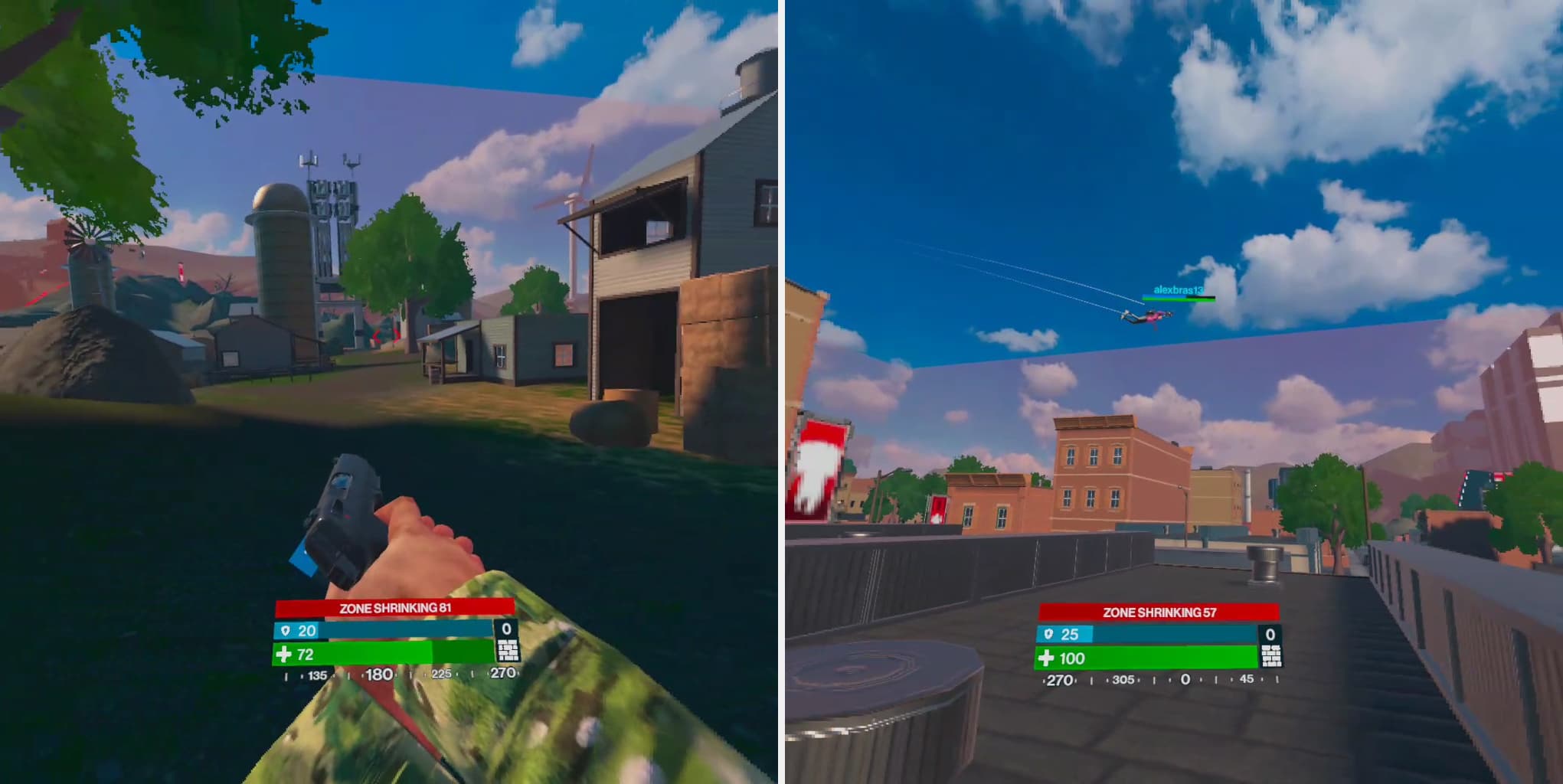 Скалолазание идеально работает в паре со способностью игроков летать. Оттолкнувшись от поверхности, можно раскинуть руки в стороны и спланировать на большой скорости. До любой постройки или объекта на карте можно добраться и залезть на любую высоту. При обнаружении строительного комплекта игрок может возводить простые квадратные стены, которые могут служить как укрытием, так и дополнительными объектами для преодоления препятствий.