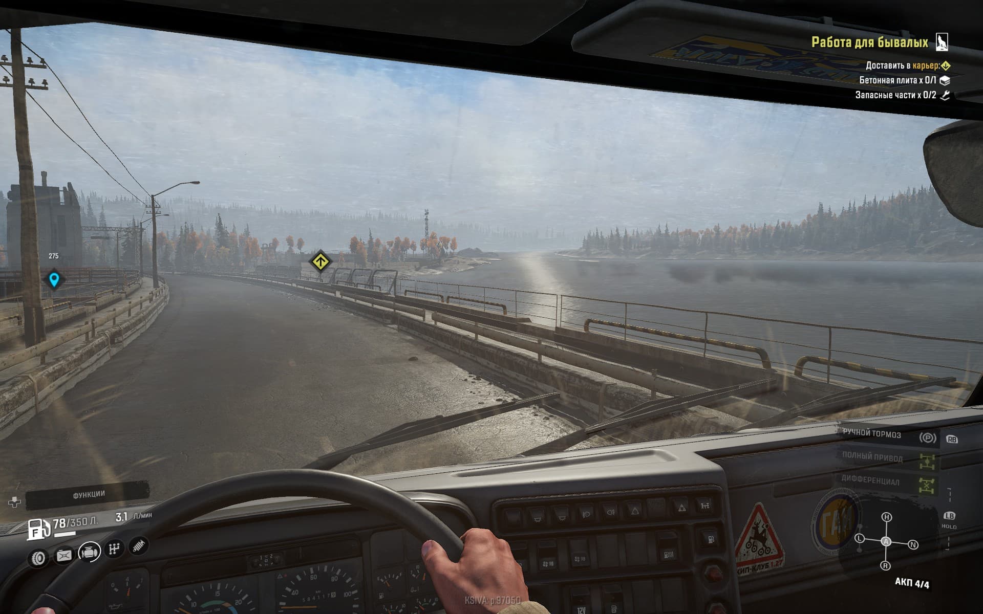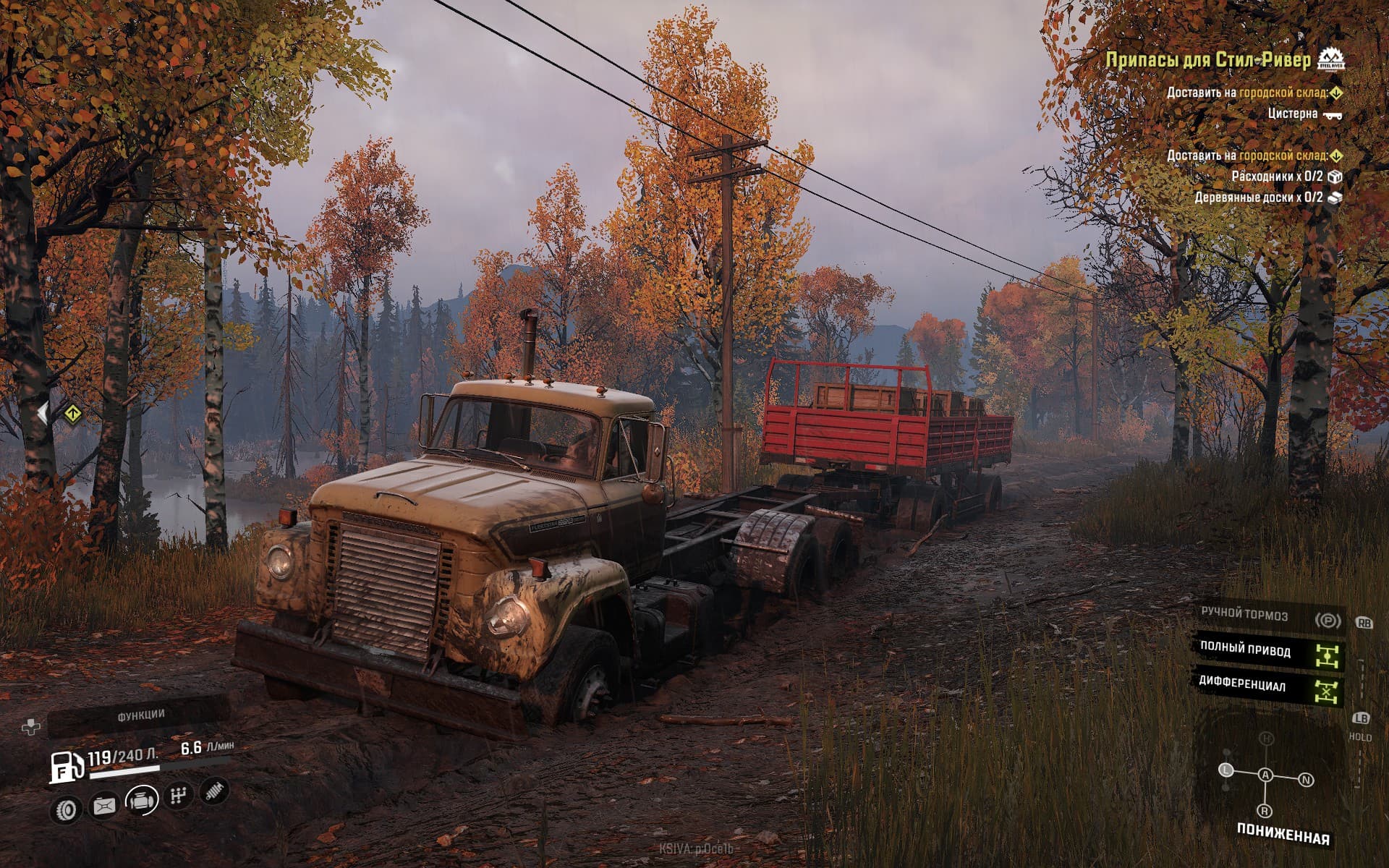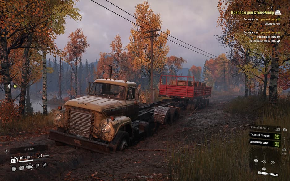 Оказывать помощь в преодолении опасного бездорожья будут вспомогательные инструменты, вроде лебёдки. Её можно и к дереву привязать, чтобы вытащить увязший в грязи тягач, а иногда и перевернувшуюся машину вернуть на колёса – такое здесь случается постоянно. С помощью погрузочной стрелы можно вернуть на место выпавшие из прицепа припасы, а грузовые краны помогают спасать собственные автомобили из особо тяжелых ситуаций.