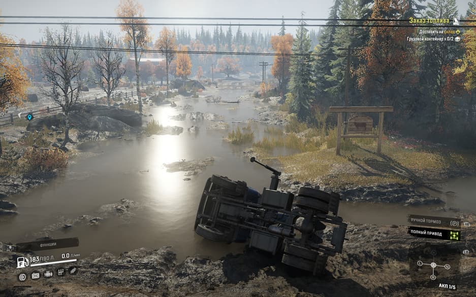 Радует, что разработчики подумали и неопытных игроках. На момент выхода в SnowRunner не было внятного обучения, но сейчас его добавили. Управление автомобилем простое, и только в самых опасных ситуациях требуется полная сосредоточенность. Переключение передач производится автоматически, однако, чтобы увеличить проходимость, нужно будет включать полный привод и дифференциал, а также переходить на пониженную или повышенную передачи. Звучит страшно, но на деле очень просто.