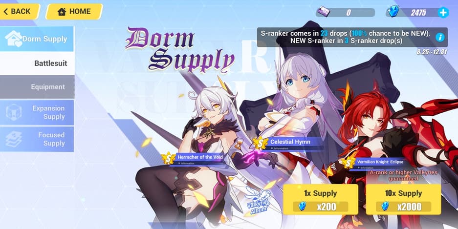 Каждая валькирия имеет свой ранг (B—A—S—SS—SSS), уровень, владеет определенным типом оружия и, в сочетании с боевым костюмом, специальными приемами. Кроме того, на каждую валькирию можно разместить три стигмы различных типов. Нет смысла в обзоре вдаваться в подробности местной мифологии. Достаточно сказать, что стигма — это аналог артефактов в других играх. Оружие и стигмы также имеют свои ранги и уровни, которые нужно увеличивать для получения более высоких показателей валькирии. Стигмы желательно правильно комбинировать, чтобы получить дополнительное преимущество.