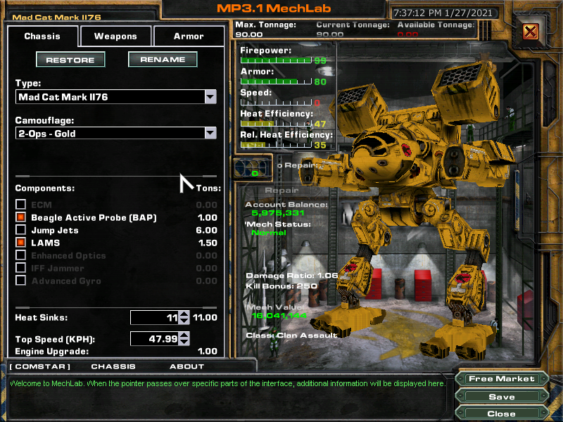 Для случайного человека может показаться странным, что одним из важнейших игровых режимов является Mechlab, в котором можно комплектовать и настраивать мехов под себя и свою команду. Во всех Mechwarrior, начиная со второй части, этот элемент является обязательным. Но только в четвертой части его довели до состояния, близкого к идеальному.