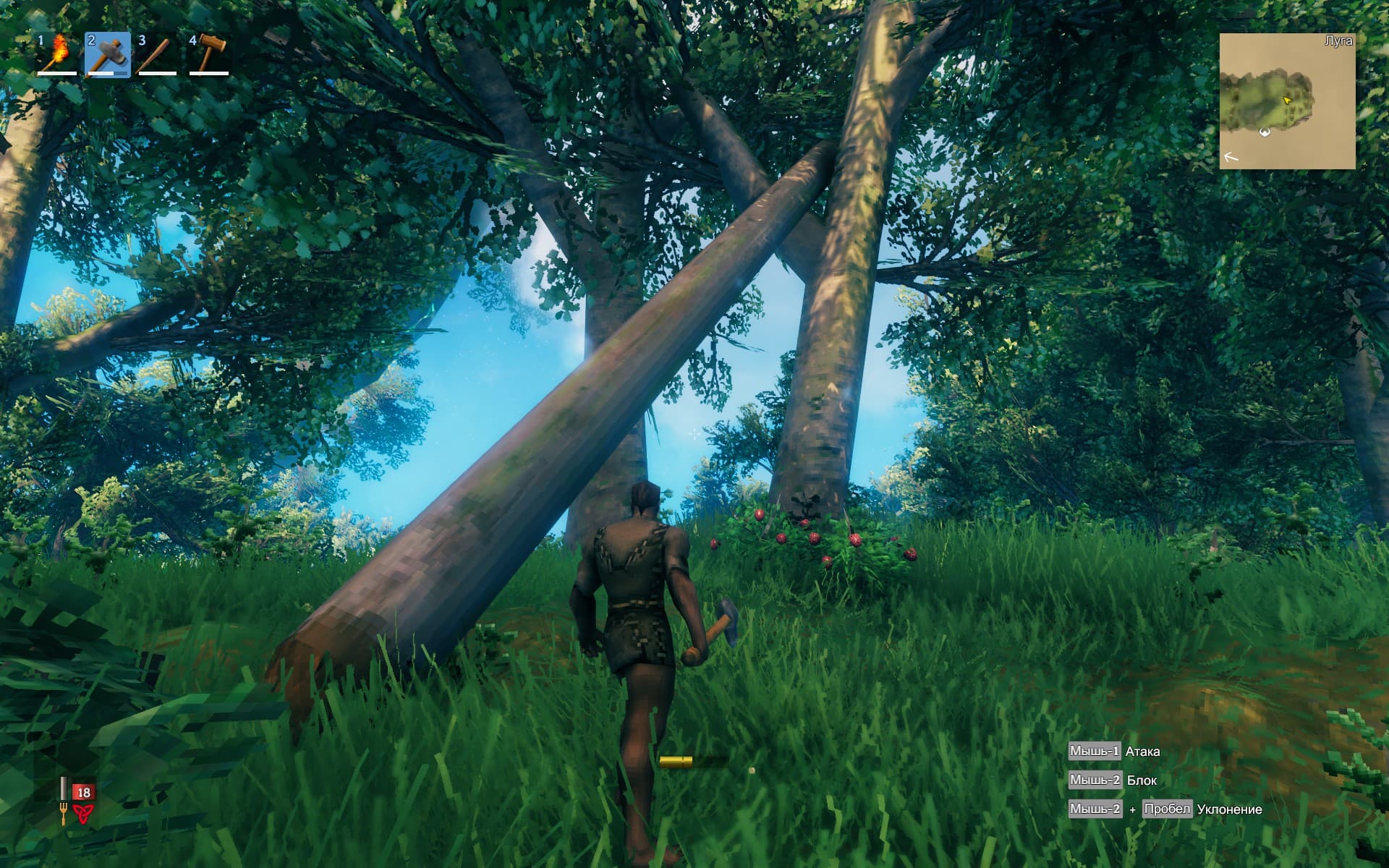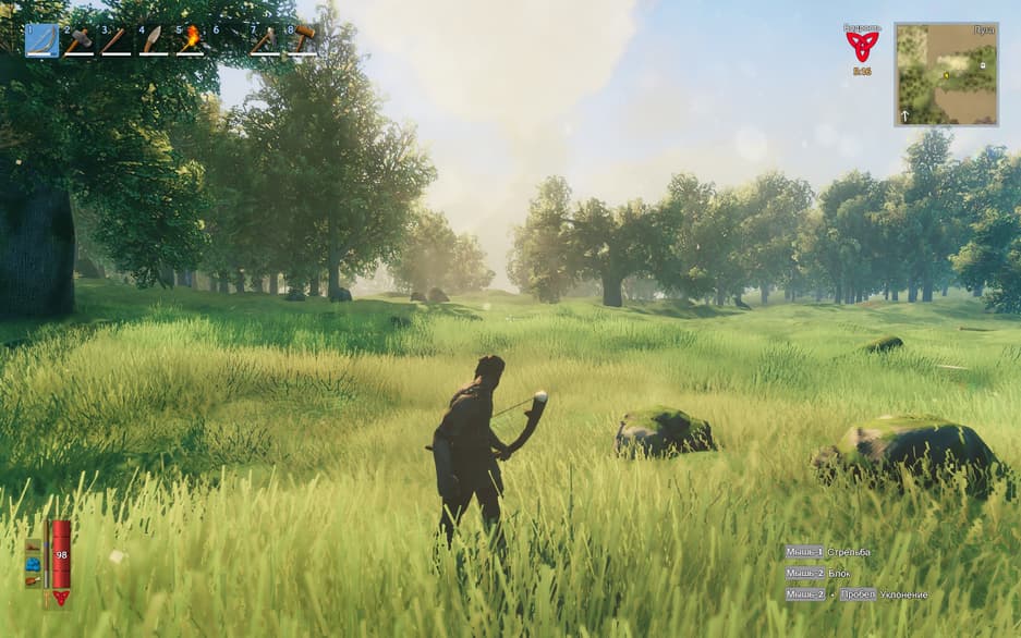 Никаких переломанных ног, перевязки кровоточащих ран и прочих элементов «симуляторов выживания». Желудок игрока имеет три ячейки под разные виды еды. Забив их, максимальное здоровье игрока и выносливость вырастет до определённой отметки. Если наш герой кушает только мясо, то будет сильным, прытким и без устали будет бороться за свою жизнь. Если же в рационе только ягодки да корешки – придётся терпеть маленькое количество очков здоровья и выдыхаться при беге через каждые 20 метров. Никто не запрещает совмещать те или иные продукты, но съесть три куска одинаковой пищи нельзя – больно прихотлив наш викинг.
