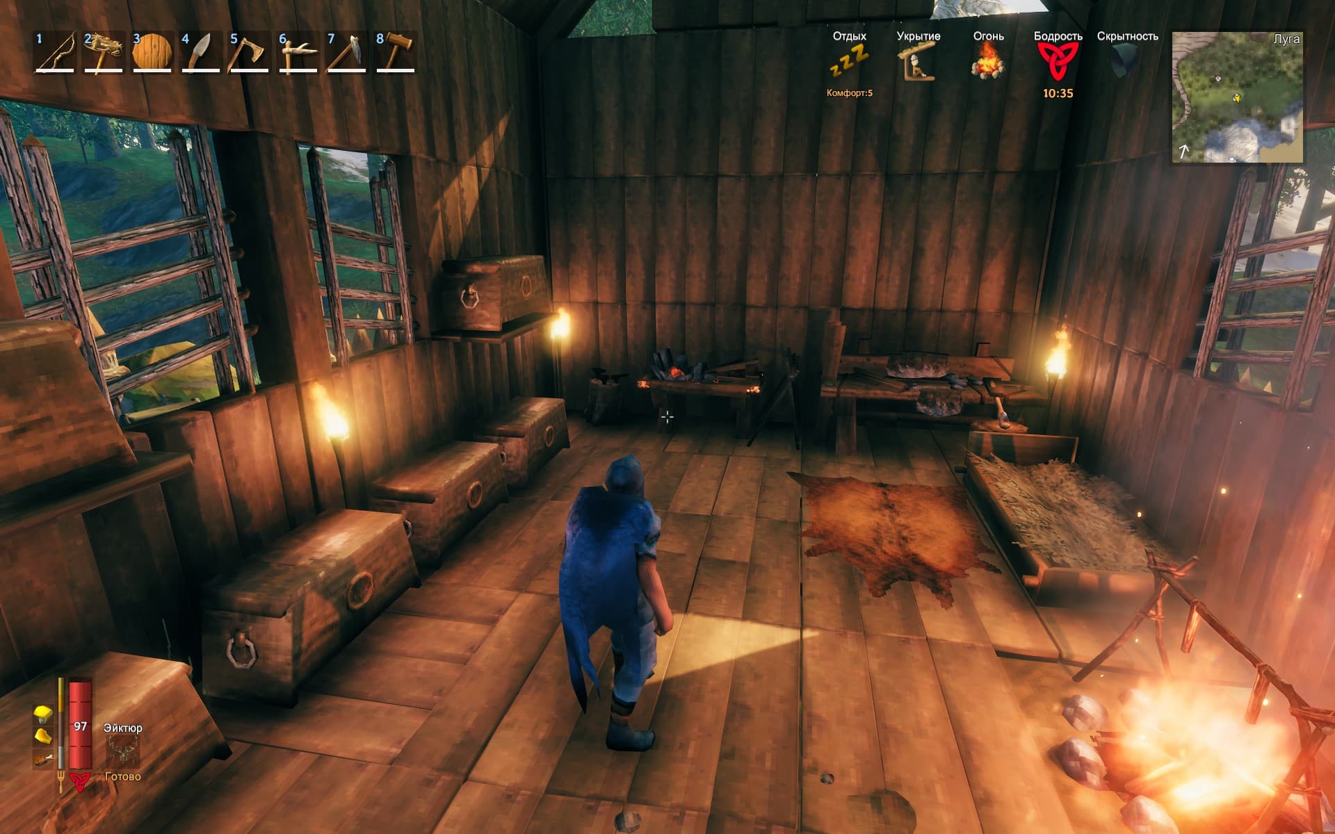 Однако, не каждая стычка может решиться в пользу нашего викинга. И здесь его выручит построенное собственными руками убежище. Сначала это будет коробка, в которую поместится верстак, сундук, кровать и очаг, согревающий холодными ночами. После первого нападения противников, разрушающих дом героя до основания, захочется обнести территорию частоколом, а убежище расширить. Механика постройки также является одной из важнейших в Valheim – появляются новые материалы, открывающие неизвестные ранее рецепты.