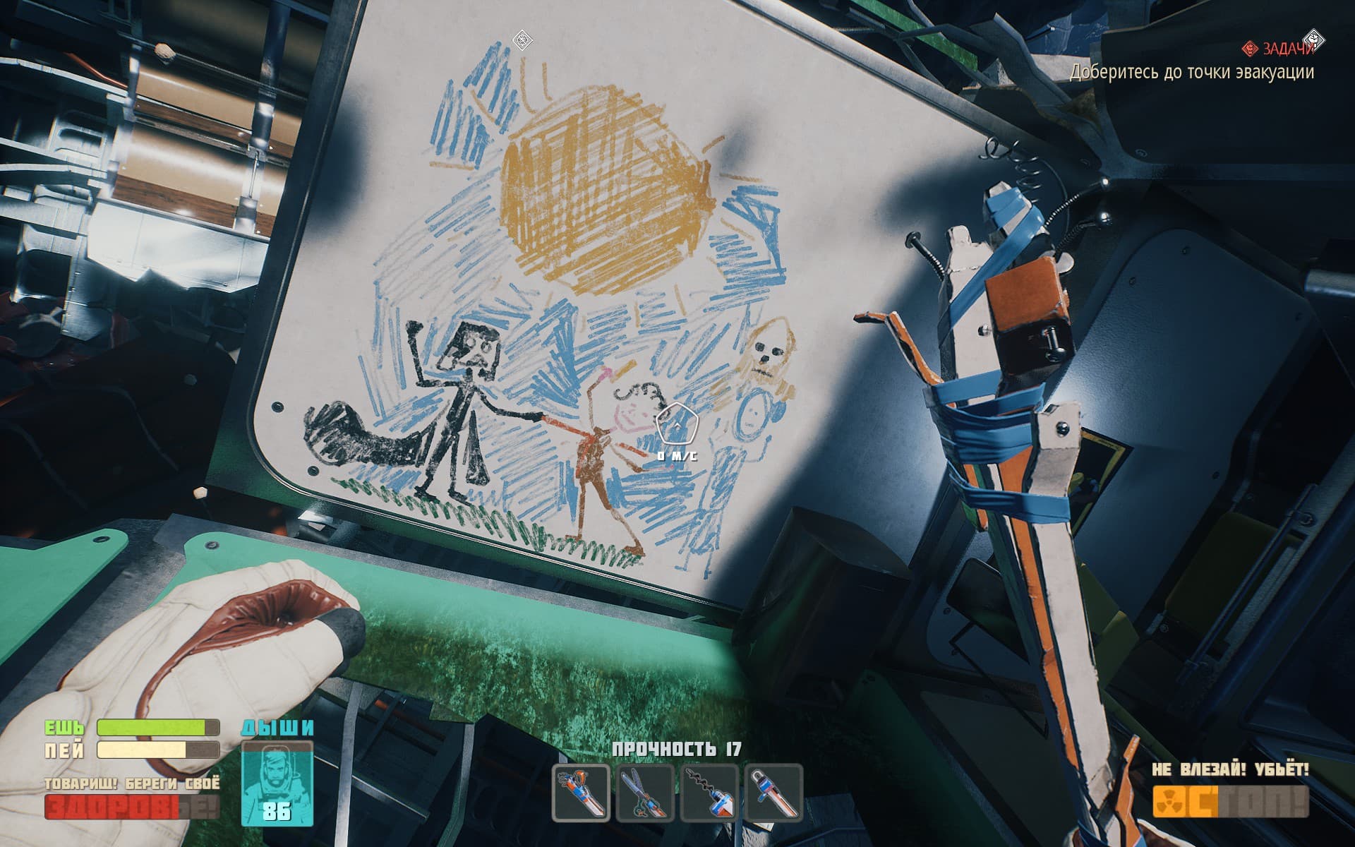 Когда эйфория после первого часа проходит, игрок остаётся один на один с суровой реальностью – ему придётся заниматься унылым гриндом ресурсов ради продвижения по сюжету. Необходимо починить антенну? Собери сначала металл и другие предметы для создания инструментов, чтобы с их помощью добыть нужные материалы для починки связи!