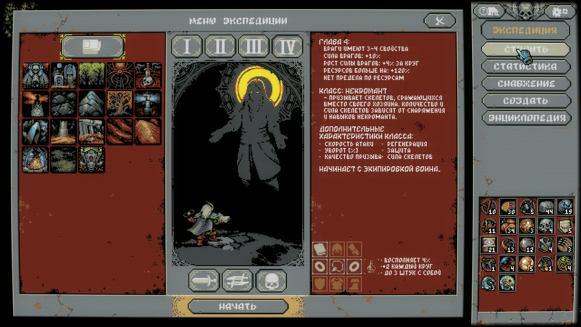 По мере расширения лагеря пополняются доступные для героя классы (Воин, Плут, Некромант), а также карточки, при помощи которых придется «вспоминать» мир в очередной экспедиции. Чем больше карт доступно, тем интереснее собирать колоду перед началом путешествия, оптимально подгоняя усилители и врагов под конкретный класс героя. Но внимательно читайте описания! Разберем на конкретном примере.