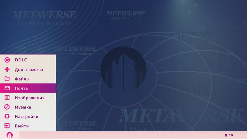 Глобальное дополнение и отдальная игра. Для нее была создана целая операционная система, где можно слушать музыку и просматривать изображения. Их мы будем получать по мере прохождения. Доступ к внутриигровым файлам стал проще, ввиду того что они все связаны с DDLC. В определенное время суток мы получаем доступ к секретным документам, проливающим свет на мир этой игры.
