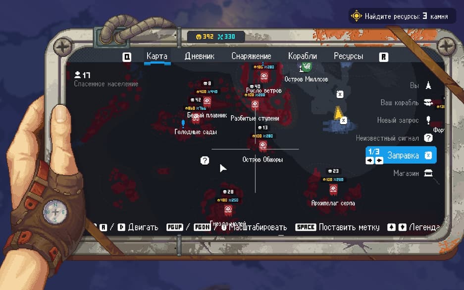 Играть становиться ещё больнее, когда никто не говорит тебе, где брать, например, астероидный уголь, необходимый для переплавки. Игрок должен сам додуматься, что парящие в небесах камни — это он и есть. Гениально!