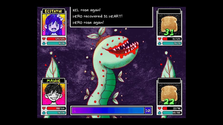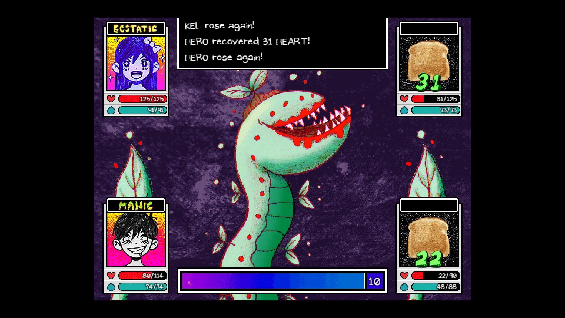 Несмотря на то, что играть в Omori просто, это на редкость приятная игра. Она вознаграждает нас за исследования. В любом уголке мира можно обнаружить персонажа со своей историей или оригинальную локацию. Нам будут встречаться разнообразные противники, чьё название является игрой слов. А в одном моменте мы можем буквально уничтожить Землю.