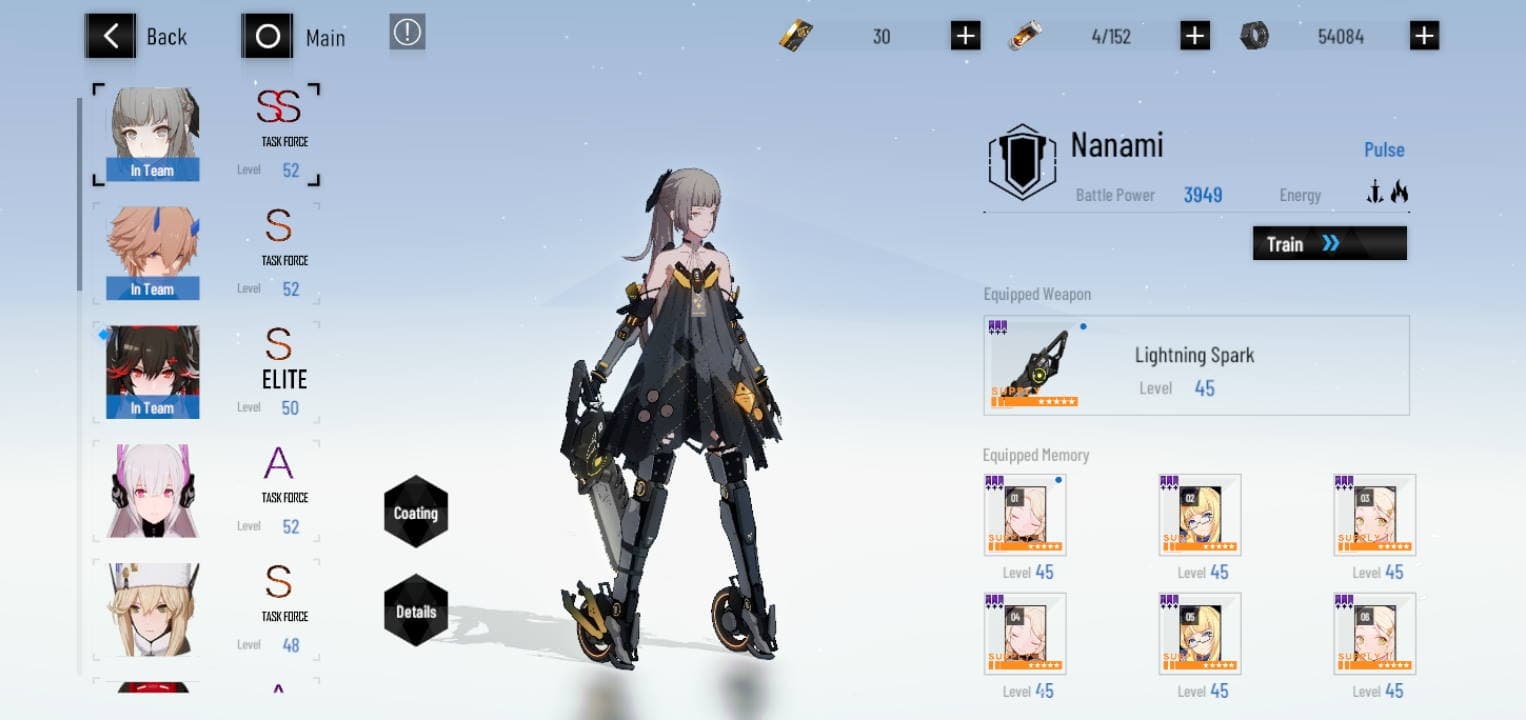 Прокачка простая, но глубокая. Прокачиваются умения, пассивные и активные навыки каждого героя, оружие, суперудары. По сюжету персонажи не совсем люди, а «конструкты», и у них есть шесть слотов под модули памяти, в которые записаны личности великих людей (если играли в Honkai Impact 3rd, то стигматы для вас знакомы). Они дают наибольший прирост к боевой эффективности героя, поэтому их тоже нужно прокачивать.