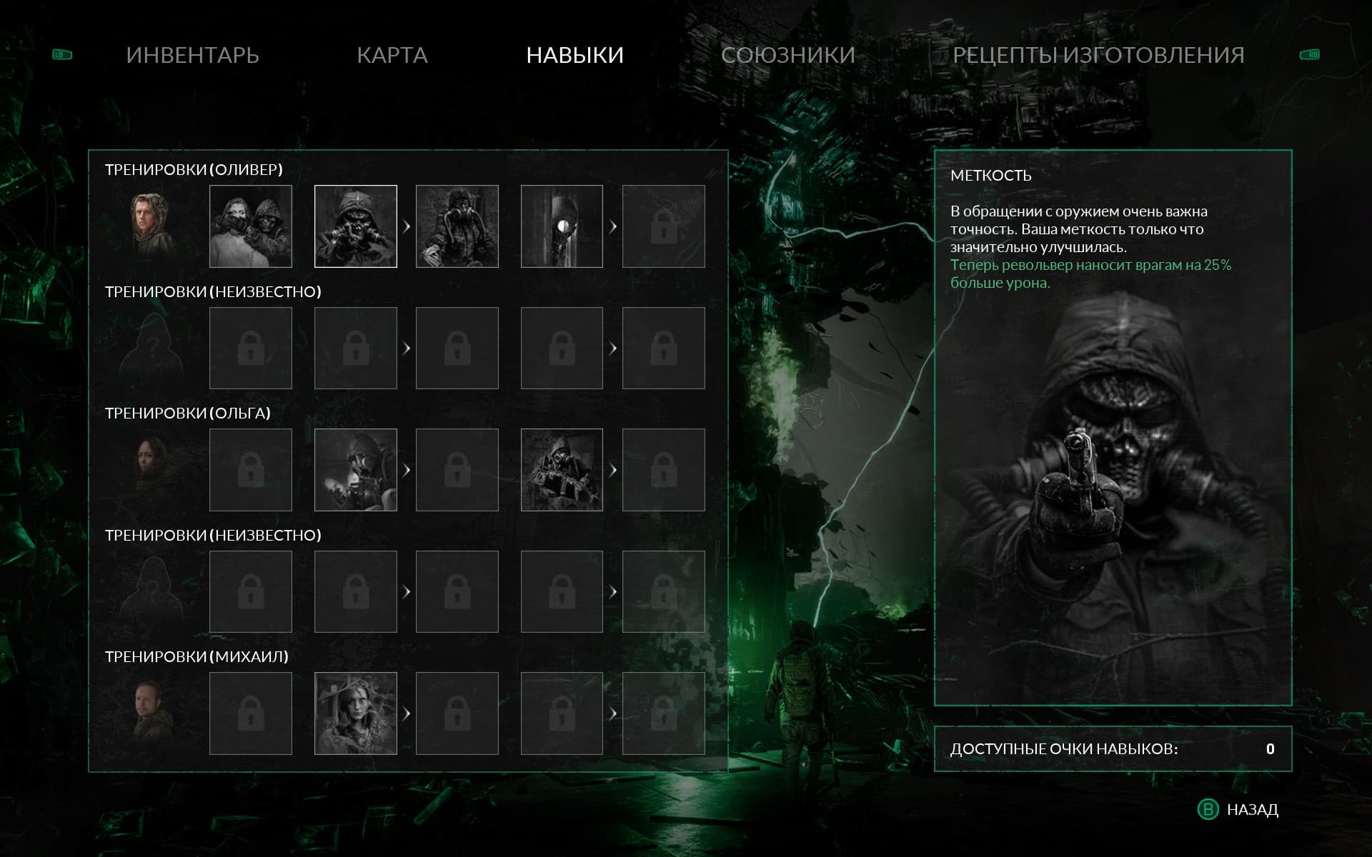 Отдельно хочется обсудить прокачку. Она присутствует номинально, улучшая пассивные навыки профессора Химинюка, вроде увеличения урона от того или иного вид оружия, расширения инвентаря или увеличения здоровья. Но вот как это оформлено – достойно «лайка». В других играх герой сразу же, на месте, учит новый навык, а в Chernobylite придётся по-настоящему тренироваться.