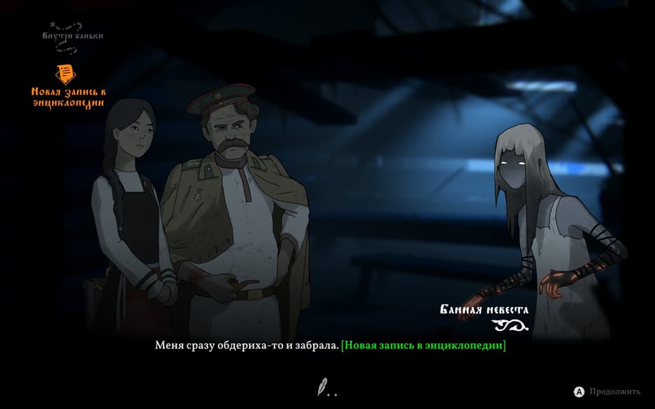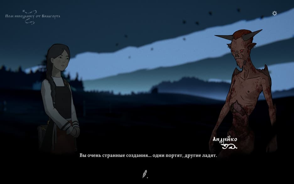Истории, встречи и задачи так или иначе завязаны на народных верованиях. В игре есть как энциклопедия, дающая научное представление о пермяцком фольклоре, так и раздел с быличками — байками, фольклор составлявшими. Тут и договор с чертом на перекрестке, и вызволение унесенной банницей невесты, и блуждание по лесу во власти лешего, и погружение на дно озера к водяному — в последней главе героиню и вовсе ждет Ад.