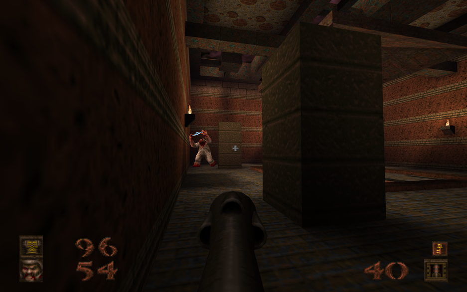 Есть и боссы. Так, в первом эпизоде необходимо уничтожить демона Хтона, используя особенности и механизмы арены. Вся она залита лавой, а игроку нужно перемещаться по тонким парапетам и уклоняться от атак врага. Последний босс Шуб-Ниггурат тоже неуязвим для обычного оружия – придётся использовать смекалку, чтобы победить. И это качественно отличает игру 1996 года от проектов нового времени.
