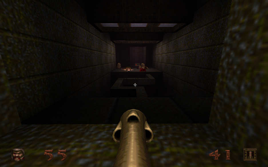Если взять Doom Eternal как образец «шутера новой школы» – там всё сводится к перестрелке не только с главным гадом, которому просто нужно сбить жизни, но и с множеством мелких противников. А всё потому что иначе у героя закончатся патроны, и он не сможет победить. Экономика игровых ресурсов завязана на постоянном сражении с мелочью и специальных убийствах с помощью бензопилы – инструмента для добычи амуниции. В Quake всё проще: патроны разбросаны по уровню и выпадают из врагов, а если они закончились — сам виноват, будь точнее и играй лучше!
