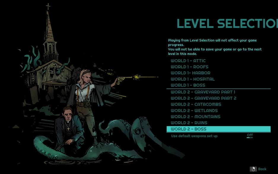 Что касается «раннего доступа» – здесь не всё так однозначно. Контента крайне мало – Forgive Me Father проходится за 3-5 часов в зависимости от уровня сложности. 13 локаций, пусть и насыщенных контентом, пробегаются за один присест. С какого-то момента и вовсе пропадает любое музыкальное сопровождение – видимо, для новых уровней оно ещё не было добавлено. На первых локациях присутствует крутой эмбиент и драйвовый металл во время битв с нечистью – он прекрасен.