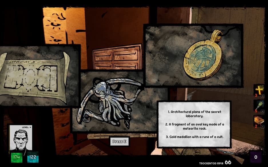 В ранней версии это весь сюжет, который предлагает игра. Если захочется узнать больше про местный мир и его обитателей – придётся собирать разбросанные тут и там записки, книжки, осматривать картины и слушать едкие комментарии священника. Но главным камнем преткновения станет отсутствие перевода на русский язык. Вся игра полностью на английском, но её вполне можно пробежать ради игрового процесса.