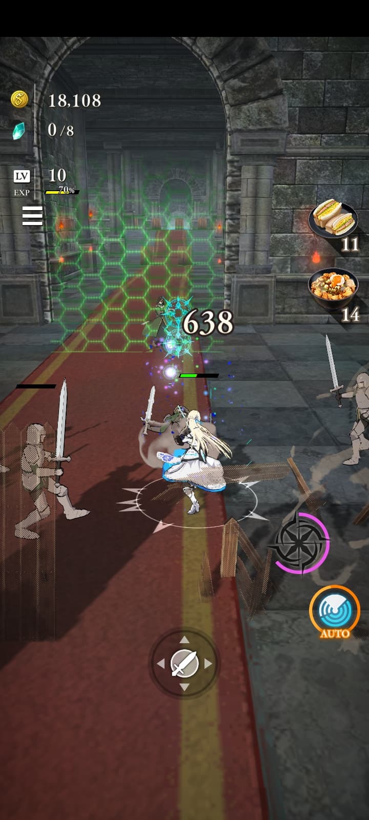 Во-вторых, «упрощенное» управление на деле непросто освоить. На виртуальный стик возложены функции не только перемещения, но и двух типов атаки. Простой тап отвечает за рядовую атаку, долгий — за усиленную. Это приводит к тому, что неудачная попытка переместить стиком персонажа включает атаку и, наоборот, вместо усиленной атаки персонаж начинает бежать. Естественно, одновременно перемещаться и атаковать не выйдет. Персонаж выбирает себе цель автоматически. Порой, не того, кого следует. Кроме того, на экране присутствуют две кнопки, отвечающие за умения персонажей, а у некоторых персонажей добавляется переключатель стиля игры (атака или защита). И это приходится контролировать одним пальцем.