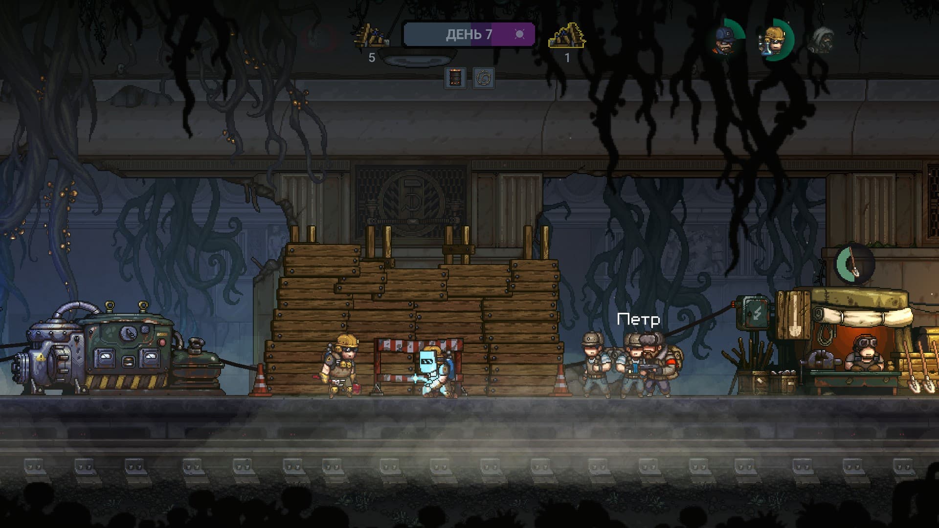 Собственно, этим и приходится заниматься. Нужно с пеной у рта развивать базу, сортировать людей, искать ресурсы и зачищать наросты. И все это ради того, чтобы пережить финальную волну. Это около двух часов постоянного драйва.