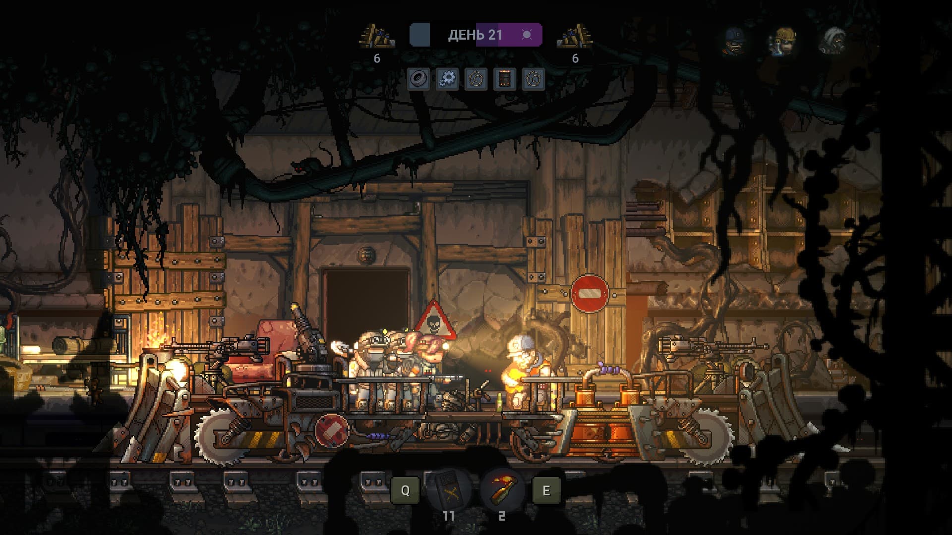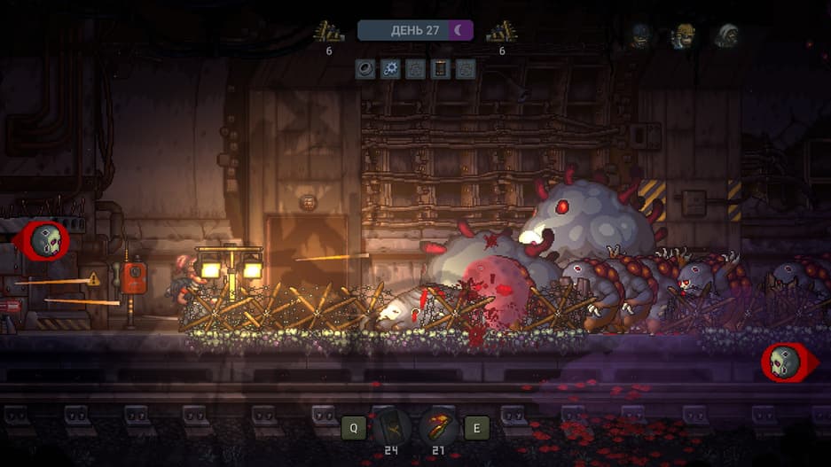 Мешать нашему прогрессу будут мутанты. Это такие монстры, что атакуют по ночам с двух направлений. Они разделяются на пушечное мясо, мортиры на ножках и гигантов. Они обеспечивают постоянное давление на игрока. И если на нормальной сложности можно ошибиться и пережить их атаку, то на более высокой ошибаться нельзя!