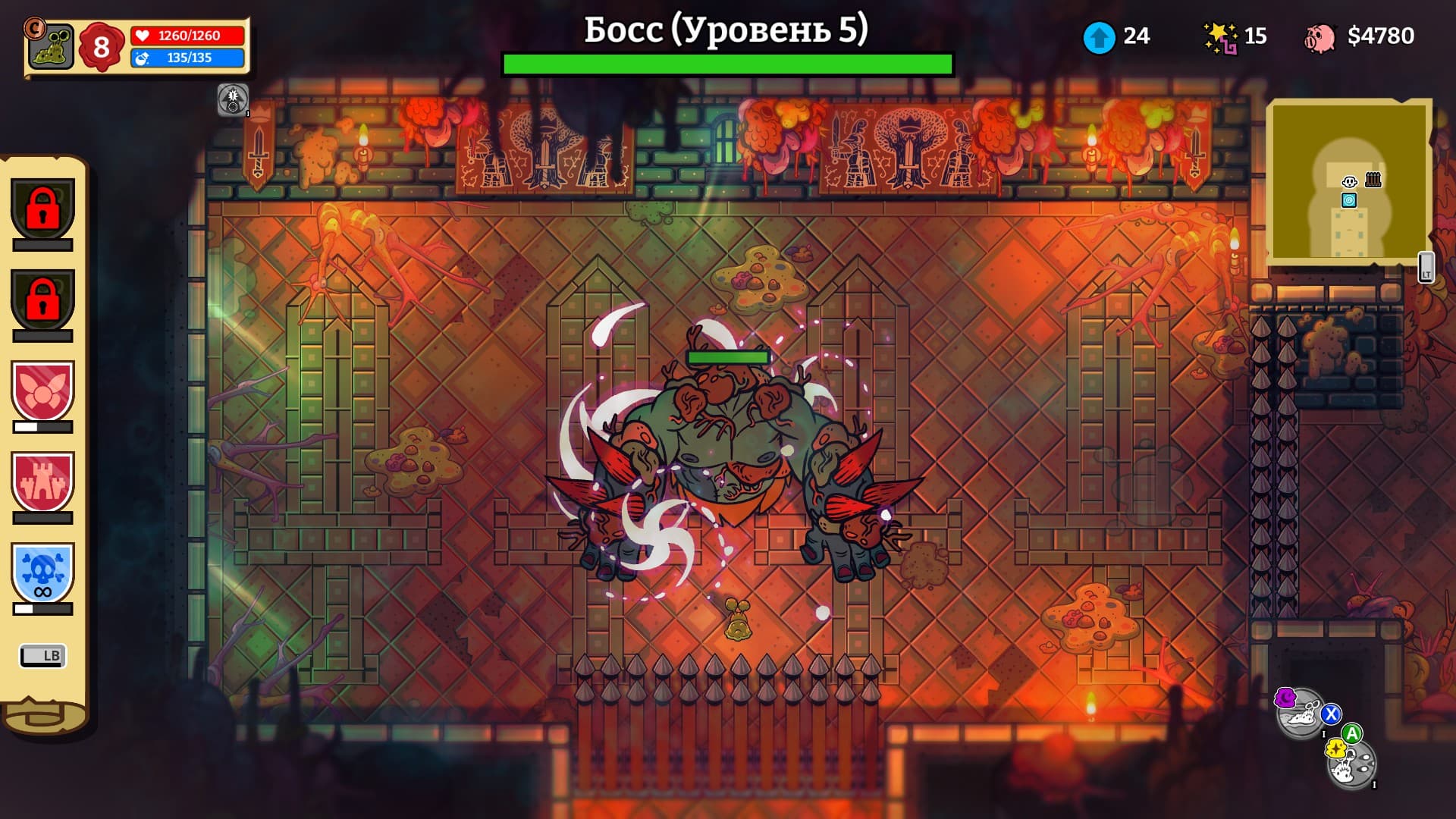Увы, но боссов разнообразием обделили. За всю игру попадается только один уникальный. Все остальные — измененные версии обычного монстра. А битва с ними всегда происходит в маленьких комнатах.