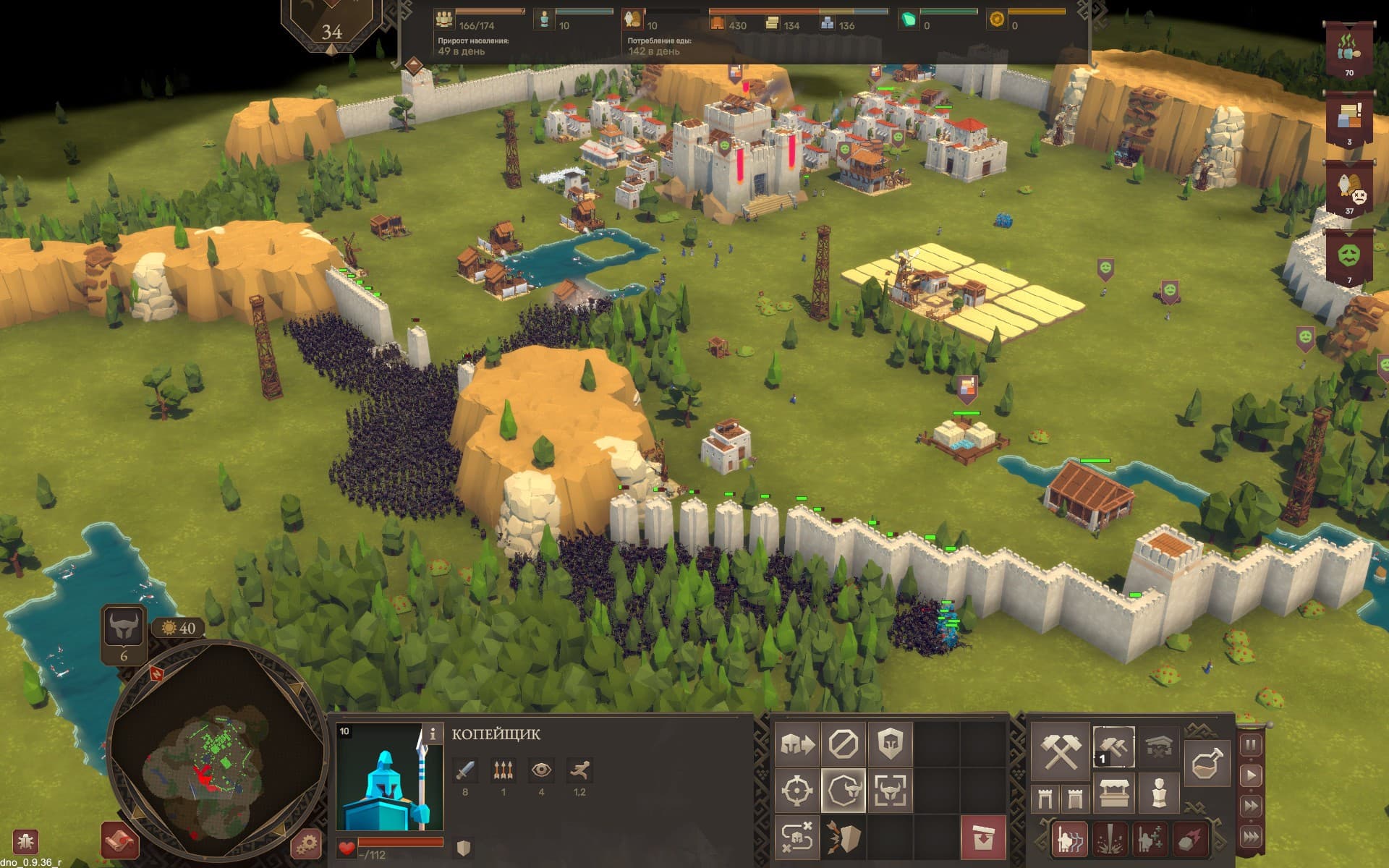 Есть здесь и цепочка исследований – она небольшая, но стоит каждого затраченного ресурса. Прокачанные копейщики с большим количеством здоровья сдерживающие натиск противника и быстро стреляющие арбалетчики на крепостных стенах спасали несколько почти безнадёжных игр.