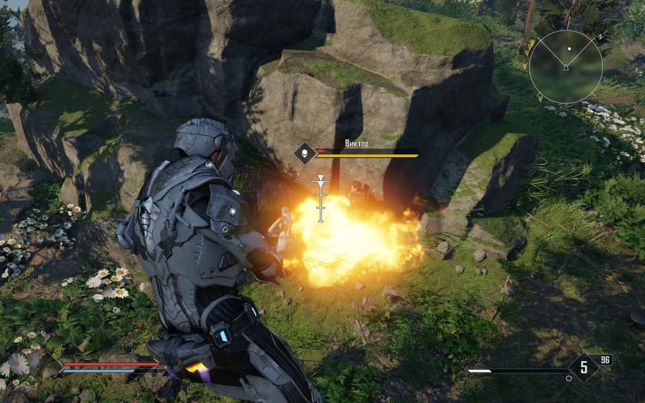 Ближний бой как был кривым, так и остался. Комбо из трёх лёгких ударов и одного тяжелого никуда не делись, разве что анимации поменялись. Щит – самое бесполезное средство защиты от вражеских ударов. Выносливость пропадает спустя три-четыре попадания, лучшим выходом в этой ситуации будут перекаты и использование ракетного ранца на спине героя. Его прокачали по сравнению с первой частью, но он всё ещё неудобный.