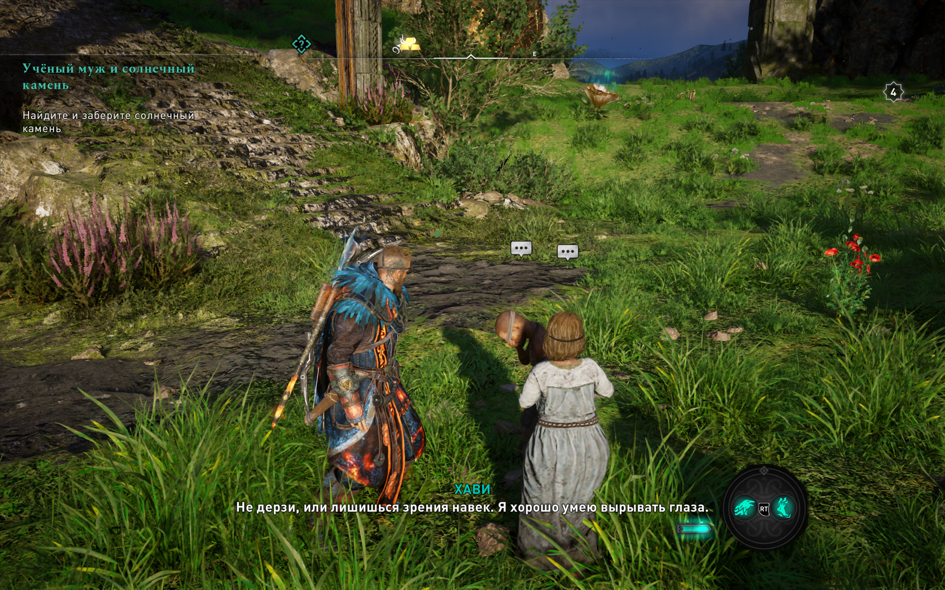 В остальном игровой процесс дополнения «Заря Рагнарёка» идентичен любой другой главе из похождения викинга Эйвора. Исследуем открытый мир, ищем броню и ресурсы для прокачки, ищем артефакты и ценности, а также проходим дополнительные миссии. Последние, в очередной раз, вышли куда лучше основной сюжетной линии – пародия на Фродо и Кольцо, любовь между ётуншей и гномом, воскрешение свалившегося с крыши строителя. Каждое такое маленькое событие запоминается сильнее, чем вся сюжетная линия Dawn of Ragnarok.