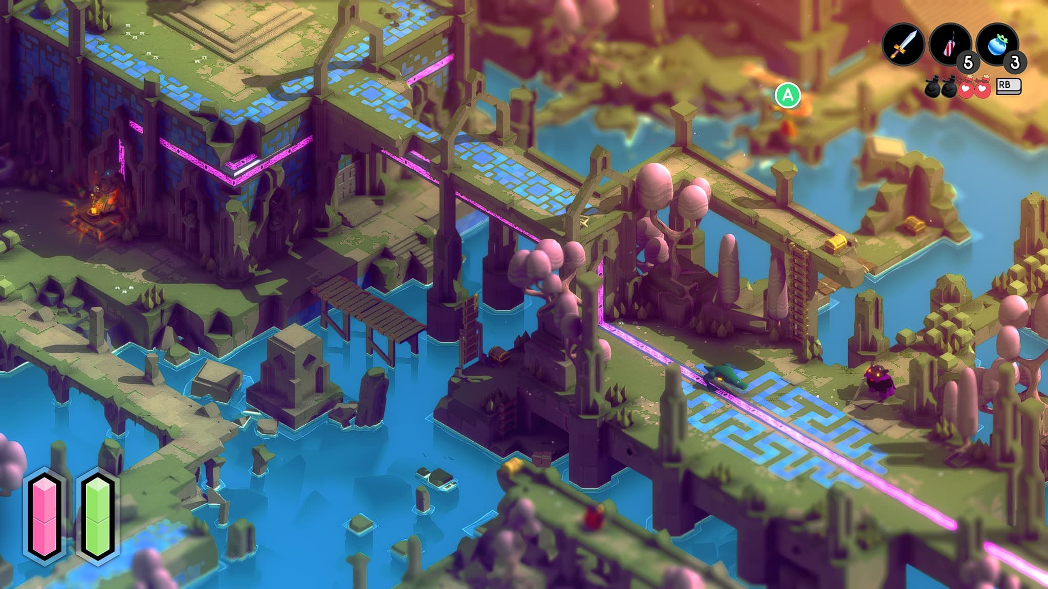 Со временем мест, которые можно посетить, станет больше: откроются ранее недоступные проходы, появится доступ к заветным сундучкам и новые способности. В этом и других аспектах Tunic похожа на Zelda, а система возрождения и жестокость сражений напомнит игры Souls. Понятно, что в битвах меньше разнообразия и возможностей.
