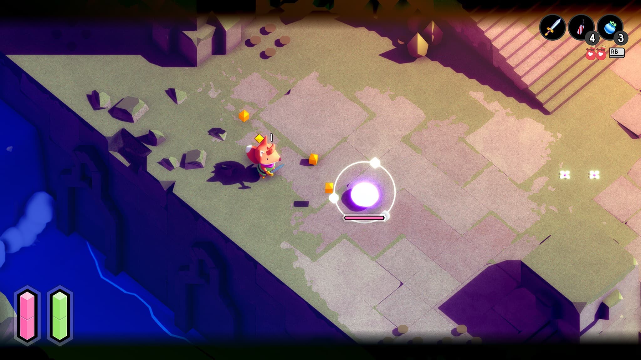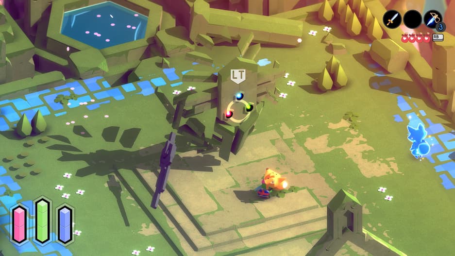 Приключение начинается без предисловия. Автор не раскрывает истории нашего героя (это лис) и не объясняет, зачем он здесь. Понимание придёт после долгих скитаний и сражений со свирепыми малышами-монстрами. Повествование передаётся через ощущения, небольшие подсказки и разрушенные статуи, позволяющие понять, что королевство пришло в упадок после вторжения тёмных сил. Чем глубже погружаешься в недра игры, тем яснее понимаешь, что под завесой спокойствия скрываются опасные тайны, мелодии станут более тревожными, а цветовая палитра – темнее.