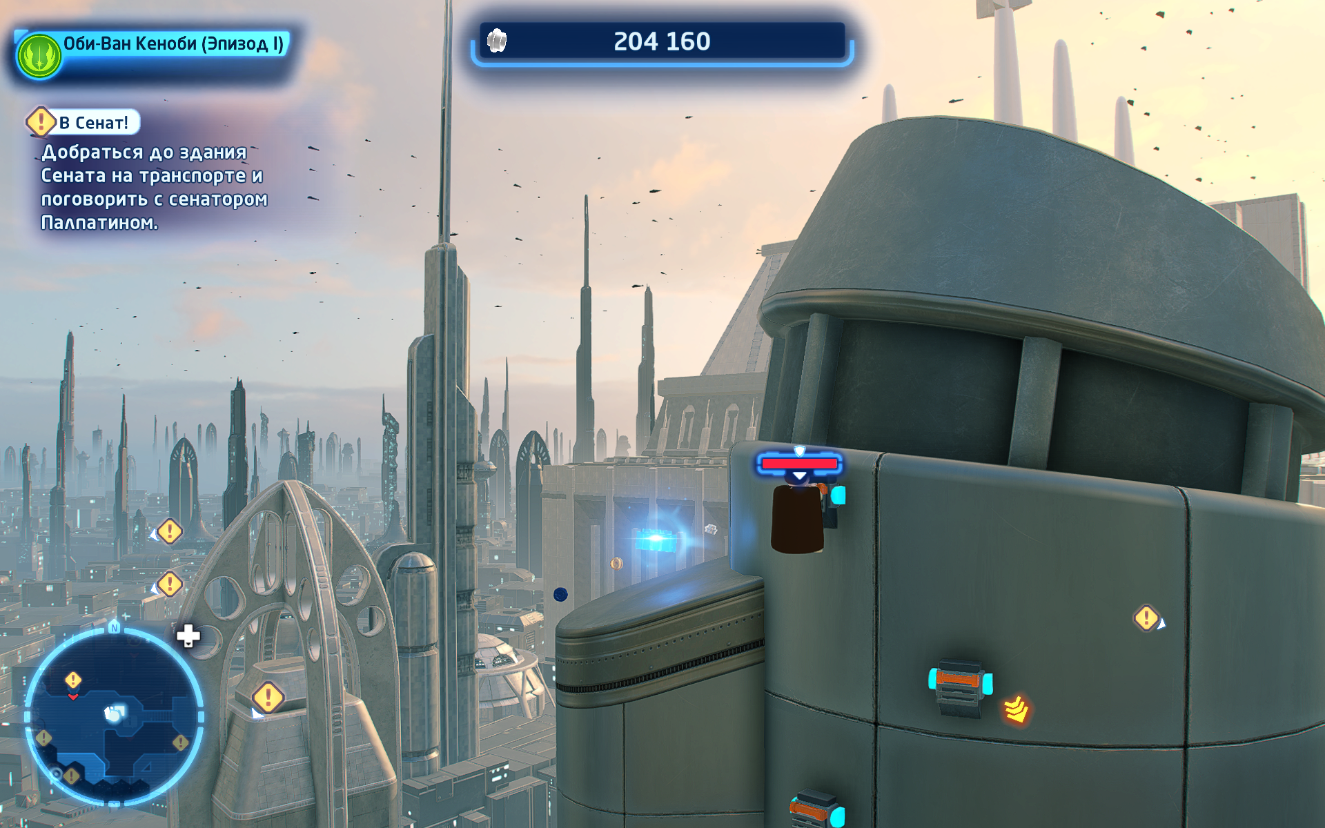 Открытый мир между миссиями наполнен самым разным контентом. Здесь есть гонки, испытания меткости или использования Силы, но в то же время появились и полноценные дополнительные задания. Найти их можно в любой точке галактики, а различаются они по степени проработанности разительно. Например, на планете Корусант у водителя такси угнали машину и нужно выяснить, где находятся бандиты, а после победить босса с его свитой. Есть и более простые задания, вроде «убей пять вредителей в Облачном городе и получишь персонажа», но они непринуждённо выполняются во время исследования мира и сбора кайбер-кристаллов.