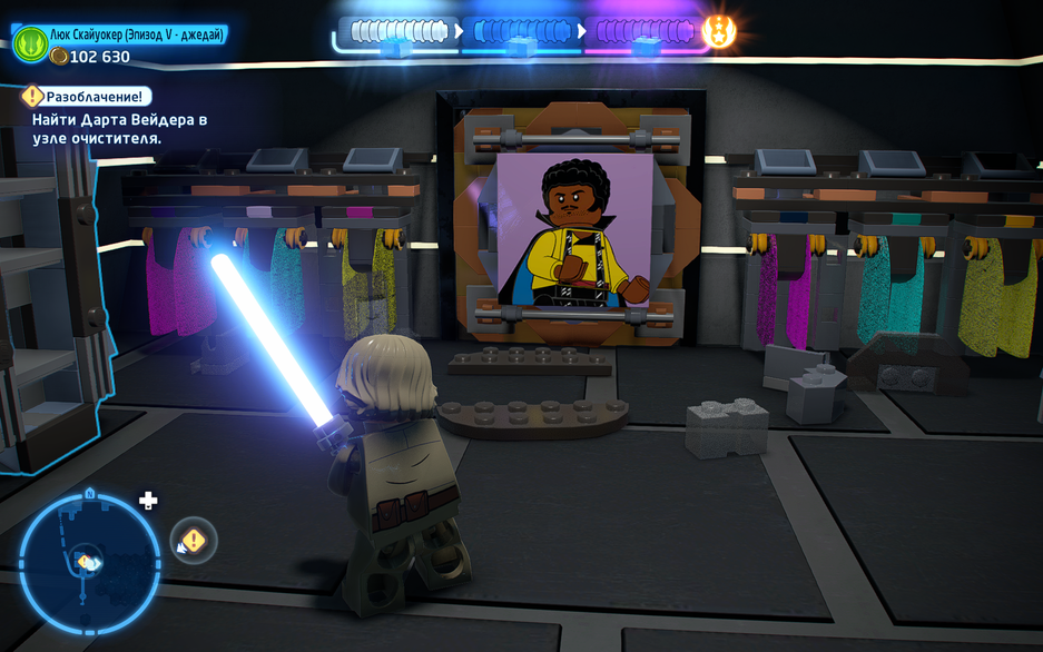 Эти самые кристаллы — ещё одна нововведение. Всего их в игре 1166 и разбросаны они буквально везде! За решение задачек в открытом мире, за паркурные головоломки, за выполнение секретных условий на уровнях, за сбор коллекционных предметов — очень и очень много способов их получения. Нужны они для того, чтобы прокачивать классы персонажей, которые и раньше были в LEGO-играх, но теперь они стали полноценной игровой механикой. Веток прокачки очень много, но придраться можно лишь к существенности бонусов — некоторые могли бы быть полезнее.