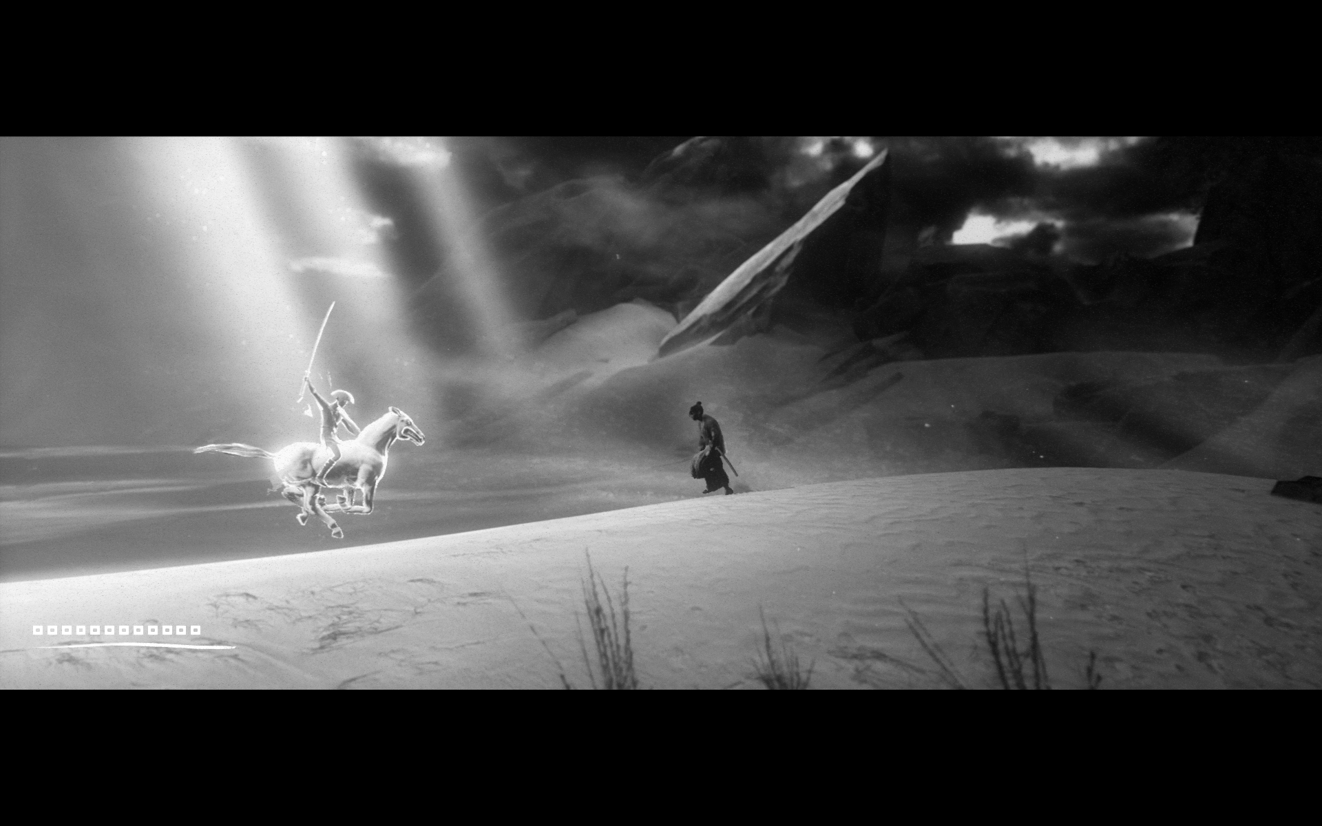 Боссы также не вызывают ответной страсти. Пока это люди или нечто похожее на гуманоида — правила боя «парируй-бей» работают. Но если протагонист сражается с неведомой зверушкой из японской мифологии (простите за спойлер!) — от них придётся только убегать или уклоняться, откусывая по чуть-чуть здоровья несколькими тычками катаны. Иногда выручает оружие дальнего боя в виде лука или порохового ружья, но боезапас ограничен.