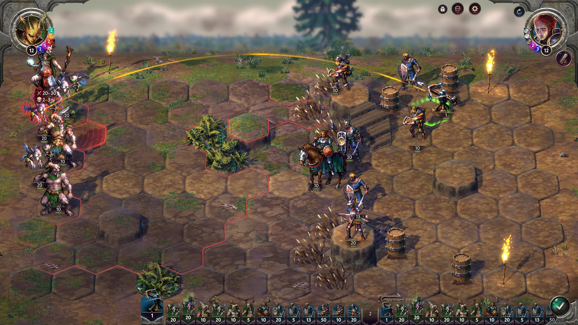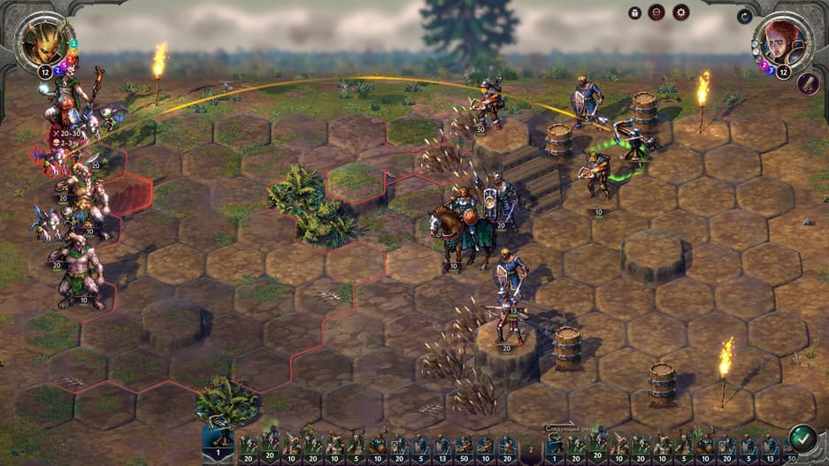Как и в Age of Wonders, вокруг бойцов есть область поражения в одну клетку, и они автоматически атакуют проходящего мимо врага. Это позволяет задержать противника и не дать ему подобраться к более ценным юнитам.